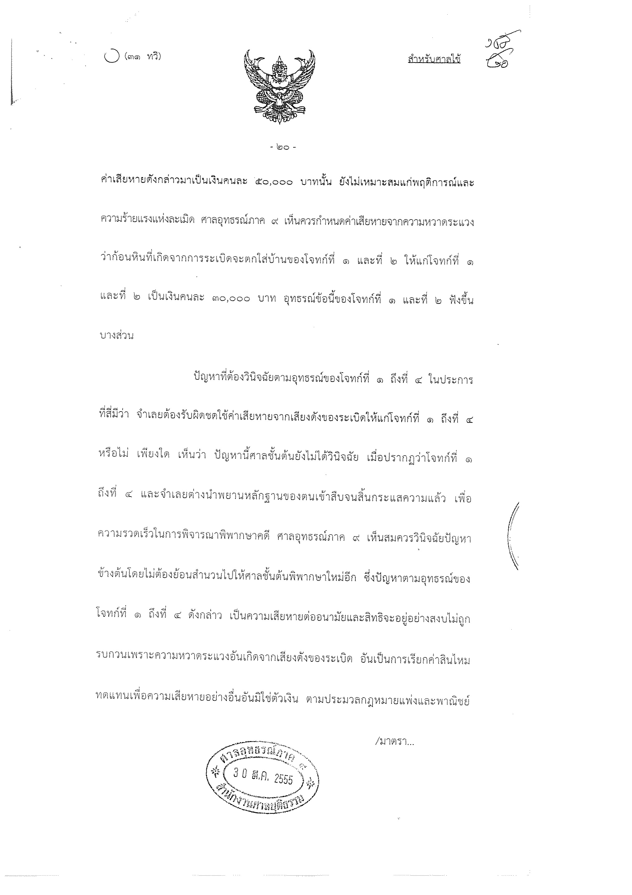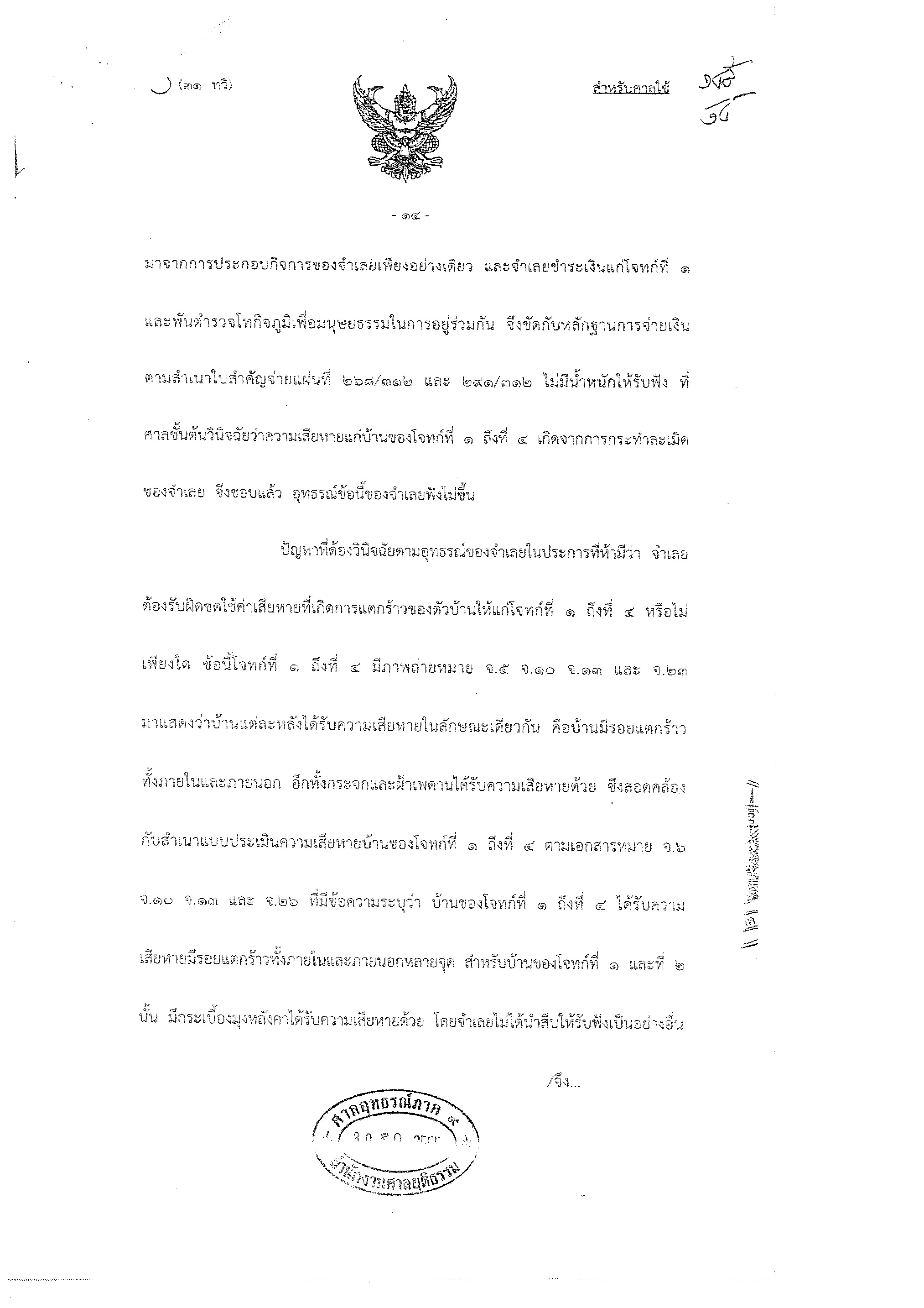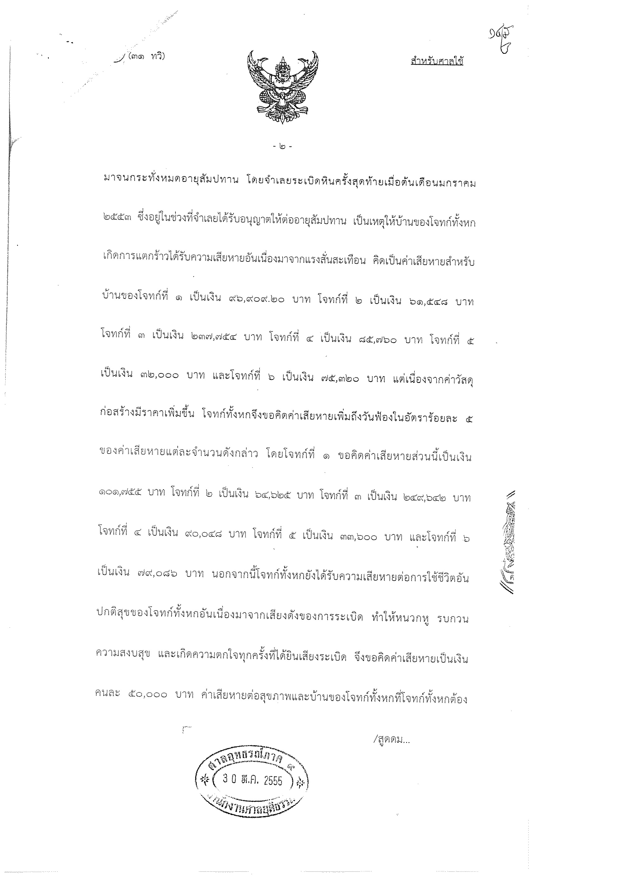 คำพิพากษาศาลอุทธรณ์ การฟ้องร้องเรื่องบ้านเรือนแตกร้าวชุดแรก(เหมืองหินเขาคูหา อ.รัตภูมิ จ.สงขลา)
