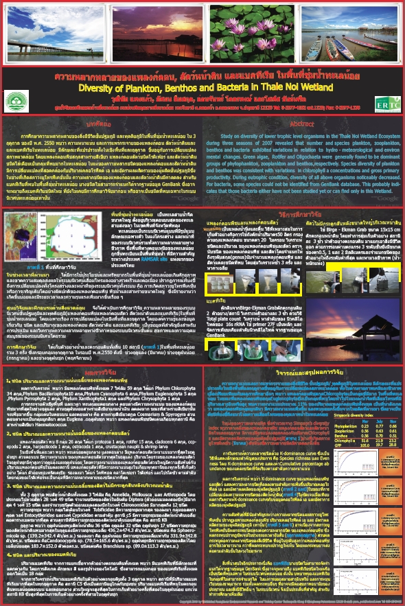 ความหลากหลายของแพลงก์ตอน สัตว์หน้าดินและแบคทีเรียในพื้นที่ชุ่มน้ำทะเลน้อย